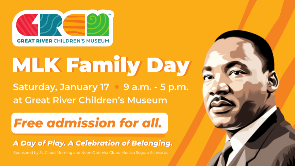 Great River Children’s Museum is proud to partner in celebrating MLK Family Day with a FREE Day of Play for families on Saturday, January 17, 2026, in observance of Dr. Martin Luther King Jr. Day.