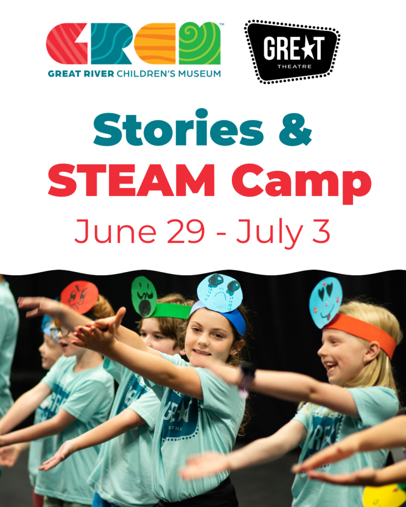 Inspired by STEAM (Science, Technology, Engineering, Arts, and Math), campers will spend each morning diving into the world of theatre through singing, dancing, storytelling, and theatre games led by GREAT Theatre teaching artists. In the afternoons, campers will explore the exhibits and hands-on experiences at Great River Children’s Museum, discovering new ways to learn through play!